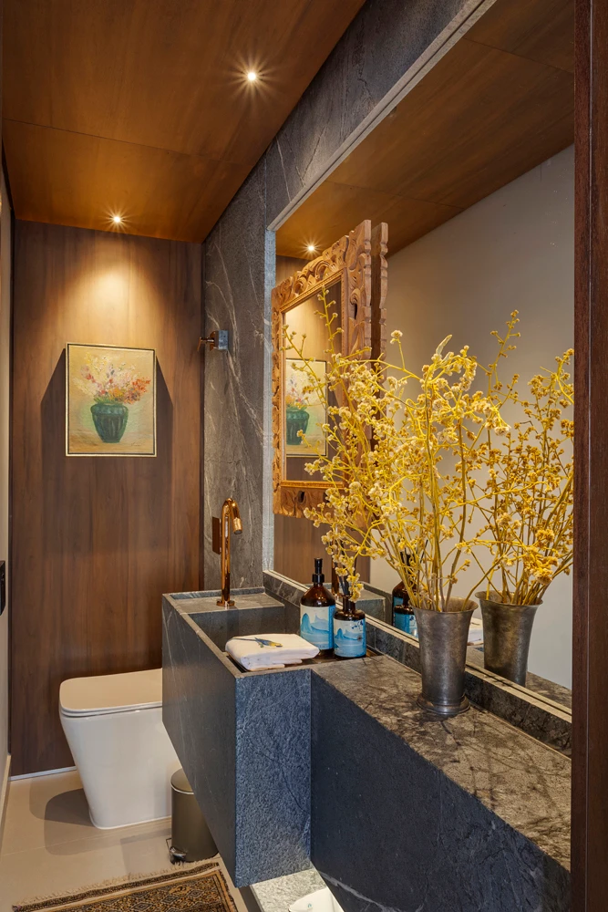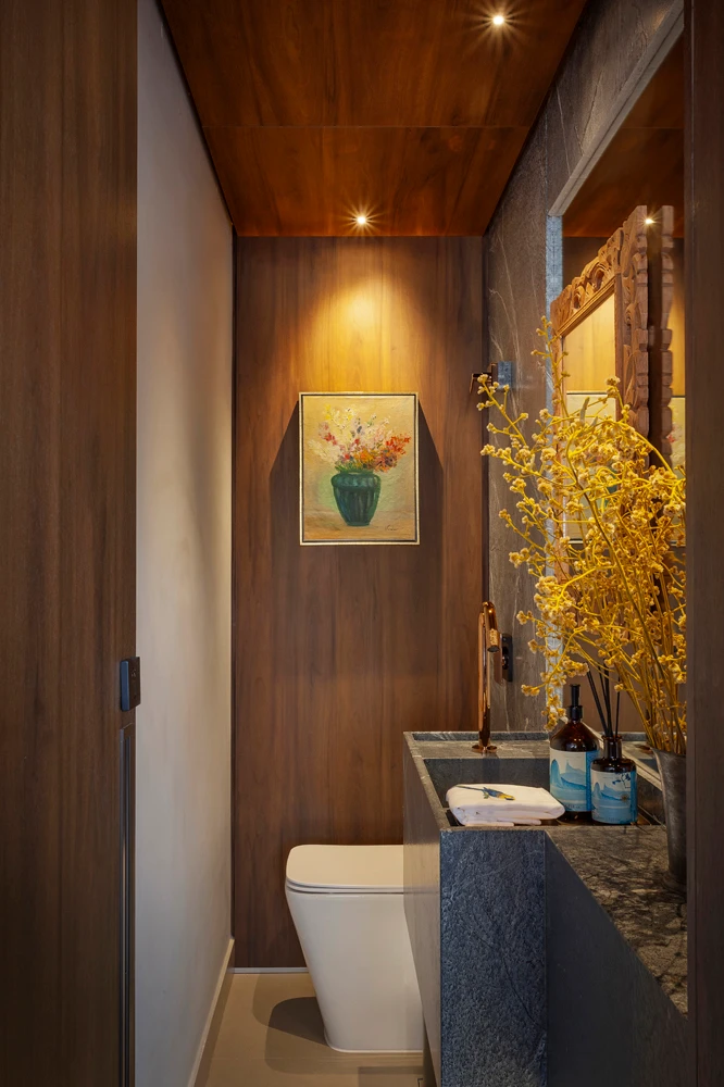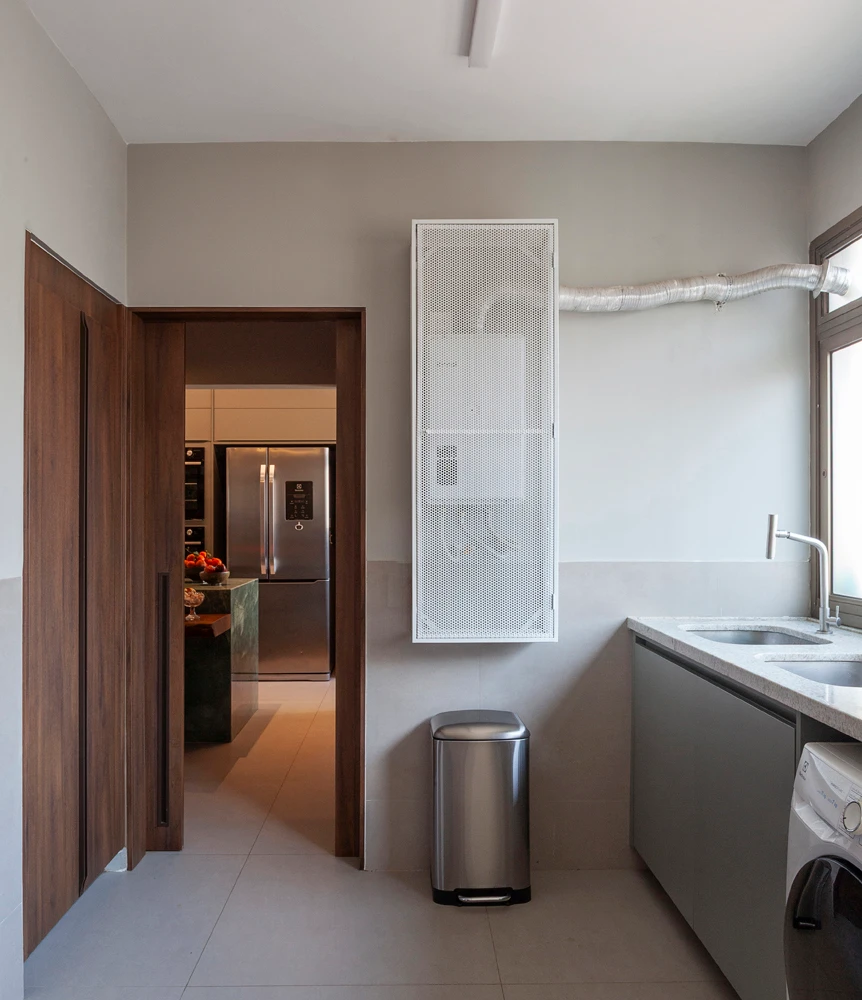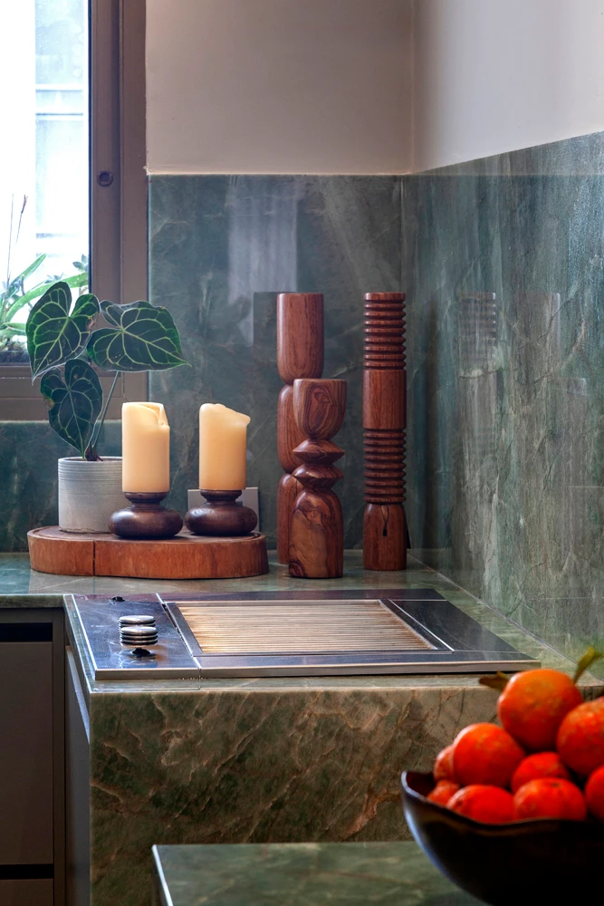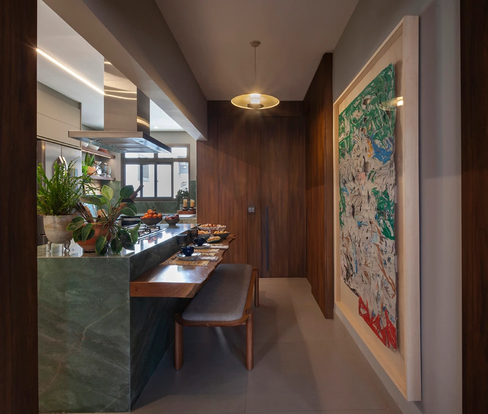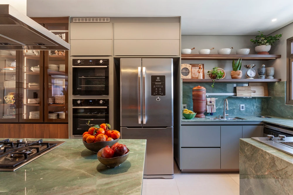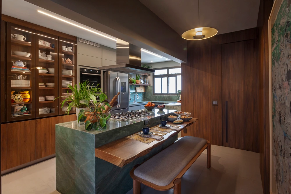 No bairro Lourdes, em Belo Horizonte, o Apartamento Geraes une o charme do design contemporâneo à riqueza dos materiais naturais, unindo adornos e peças típicas de Minas Geraes. A cozinha, marcada pela pedra verde exuberante e pelo detalhe orgânico da madeira bruta, reflete o equilíbrio entre sofisticação e acolhimento. A Doppio Arquitetura criou um projeto que valoriza a funcionalidade sem abrir mão da estética, com iluminação precisa, marcenaria sob medida e atmosfera convidativa — um lar pensado para viver bem todos os dias.