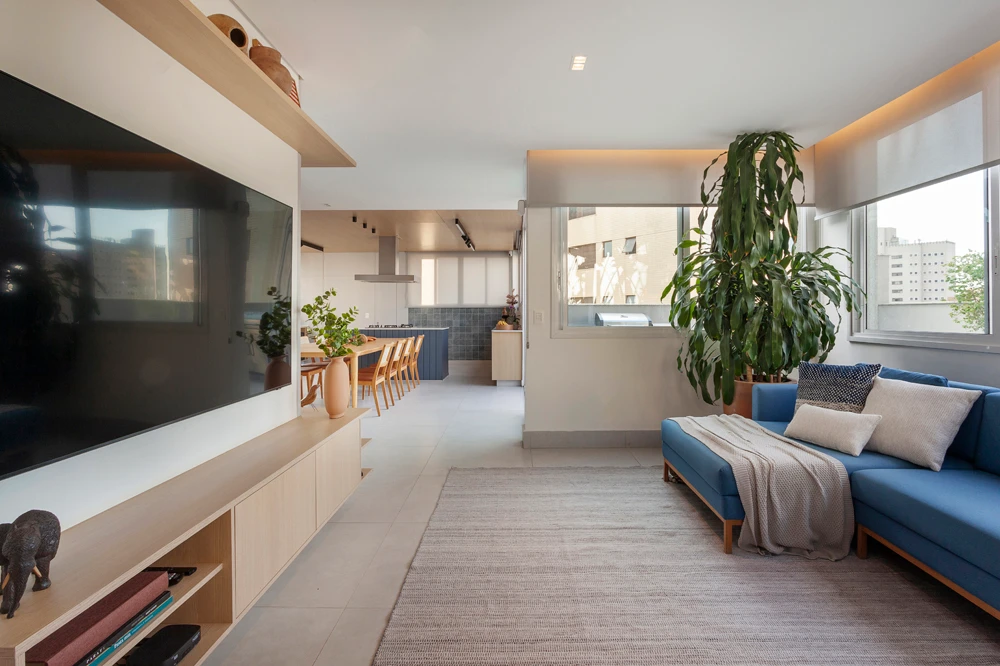 Localizada no bairro Sion, em Belo Horizonte, esta cobertura reflete a essência jovem e descontraída de um casal sociável que desejava um espaço leve e cheio de personalidade. O projeto de interiores da Doppio Arquitetura explorou núcleos vibrantes, mobiliário contemporâneo e integração entre os ambientes para valorizar a convivência e o bem-estar. O grande destaque é o espaço gourmet, com jardim natural e spa, pensado para receber amigos com conforto e estilo. Um projeto alegre, colorido e autêntico — que traduz a energia dos moradores em cada detalhe.